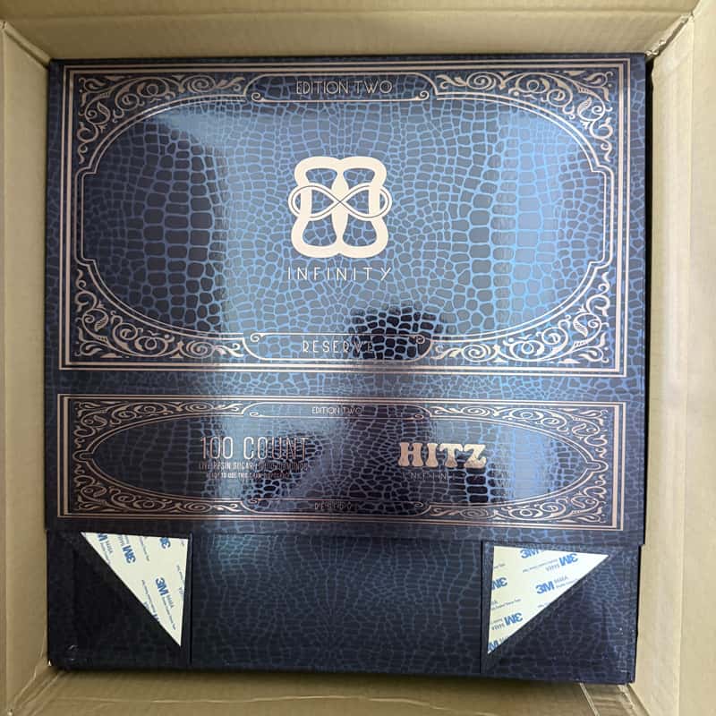 Hitz Infinity Edition Two comes in blue label, so it is also called Hitz Infinity Blue Edition. It is also called 9th Gen Hitz 2g by Chinese empty vape pen manufacturers. It comes with a big screen with puff number display, and flashing stars. Hitz Ininity 2g packaging is the same as the original one, it has vape pen, individual vape box, master box, and stickers.